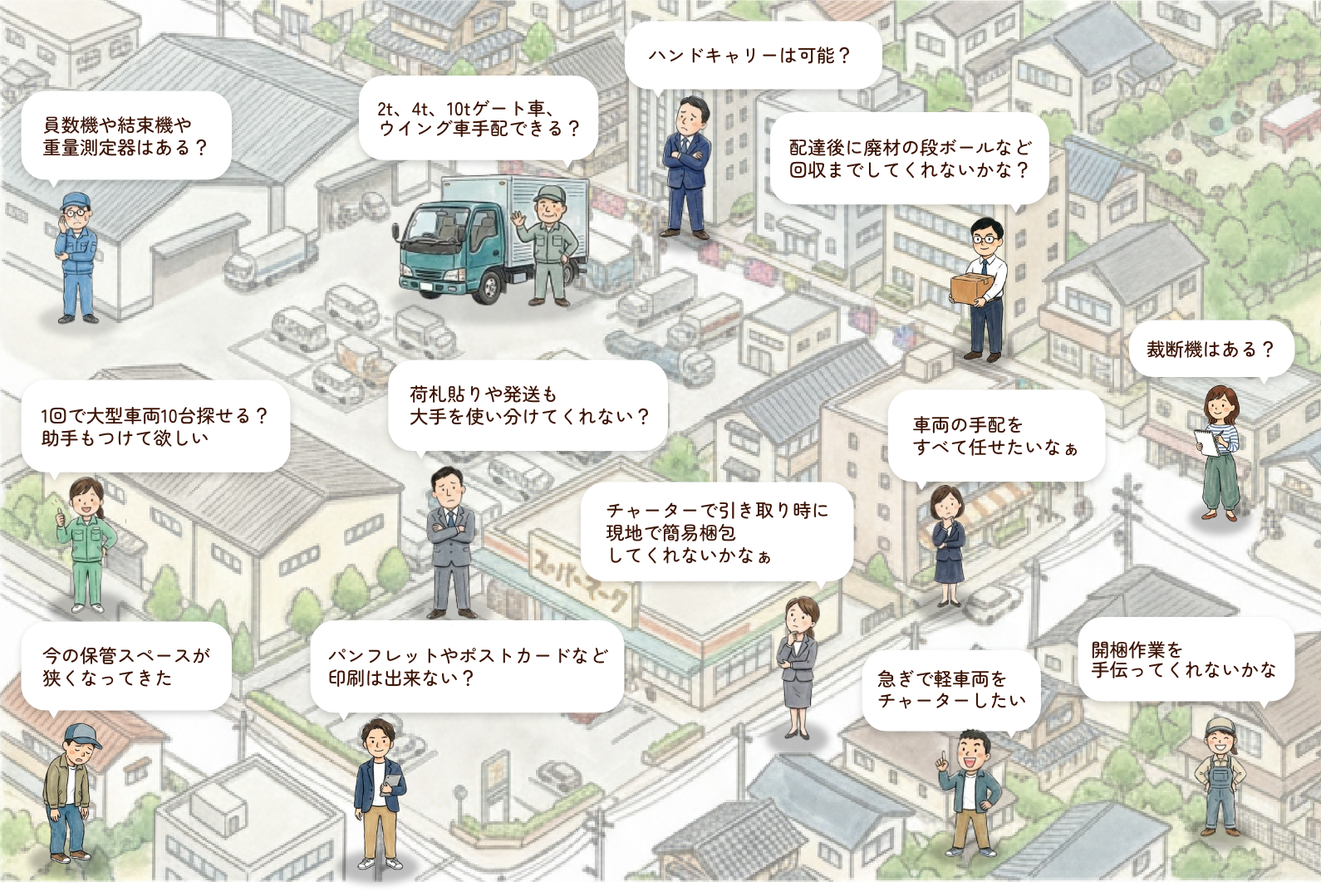 軽自動車から大型車両の手配まで、最適な車両を提案いたします。